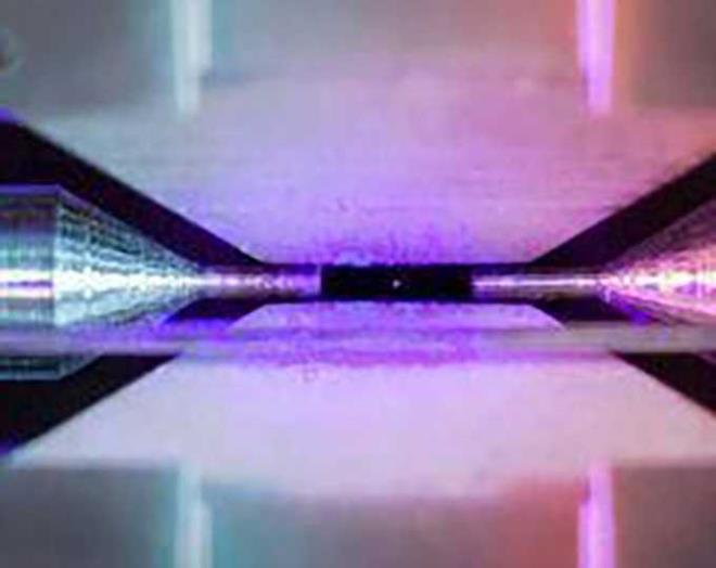 Fotoğrafın ortasında küçük mavi nokta tek bir atom. Daha doğrusu, tek bir stronsiyum atomundan yansıyan ışık. Maddenin en küçük yapı taşlarından atomları çıplak gözle görmek imkansız. Oxford üniversitesi quantum fiziği uzmanı David Nadlinger ise, özel bir düzenekle imkansızı başardı. ek bir stronsiyum atomunu özel bir manyetik alanda hareketsiz tutan Nadlinger, atomun üzerine mavi ve mor renkte lazerler yansıttı.