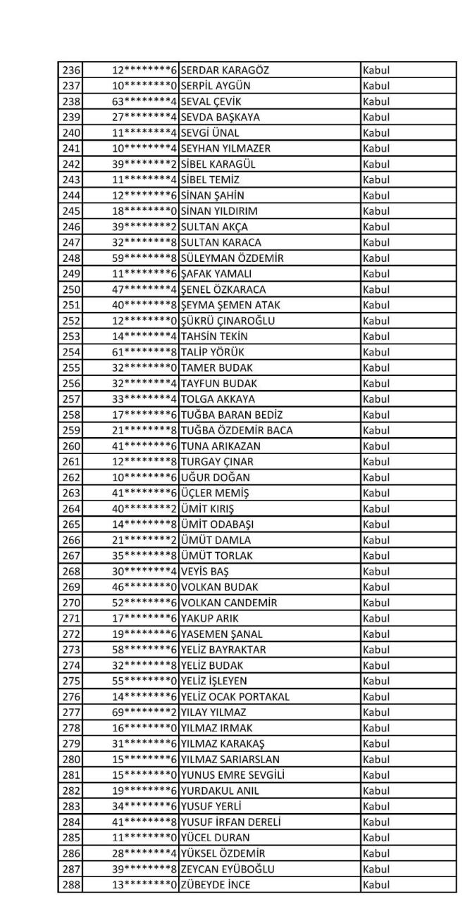 SOSYAL GÜVENLİK KURUMU (KABUL EDİLENLER)
