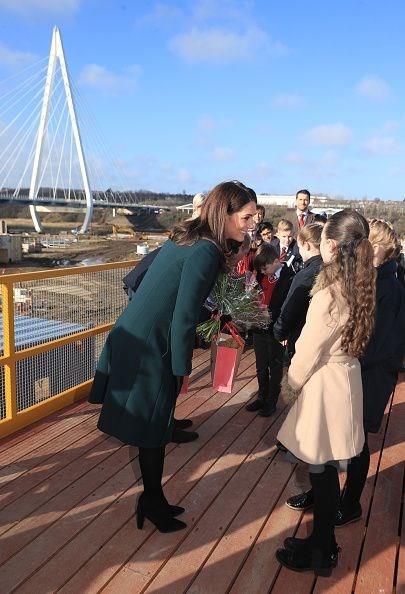 36 yaşındaki Middleton, Sunderland ziyaretinde 159 sterlin (yaklaşık 850 Türk Lirası) değerinde Seraphine markalı çiçekli bir elbise ve petrol rengi Dolce &Gabbana imzalı trençkot tercih etti.