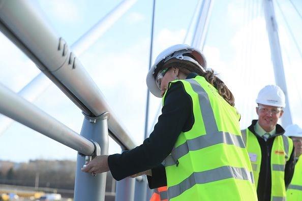 Prens William ve Kate Middleton, daha sonra, bahar aylarında açılması beklenen bir köprünün inşaatını ziyaret etti.