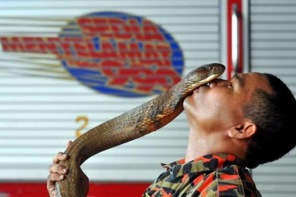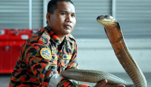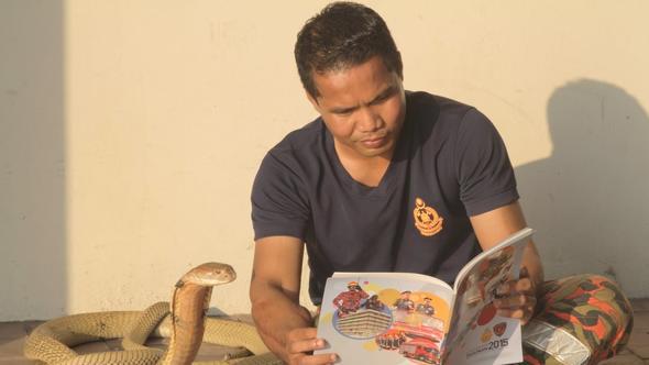 Yılanlarla iletişime geçen Malezyalı Hüssin, ülkede yılanları yakalamaya çalışan bir ilk yardım ekibinin başındaydı ve kariyeri boyunca yüzlerce yılanı öldürmeden toplayarak bölgede nam salmış bir isimdi.