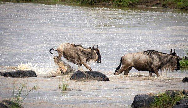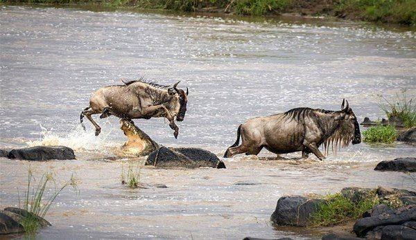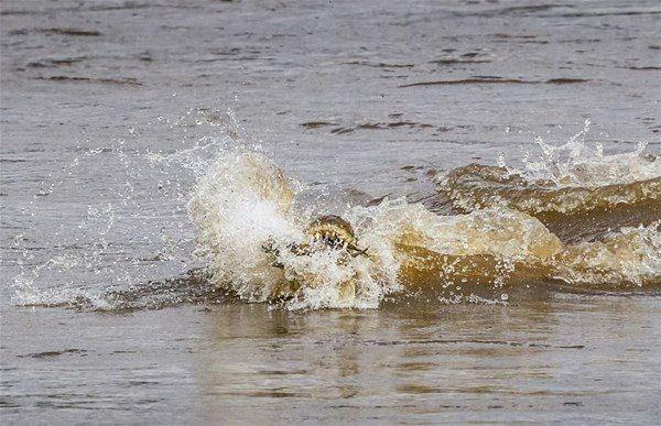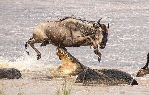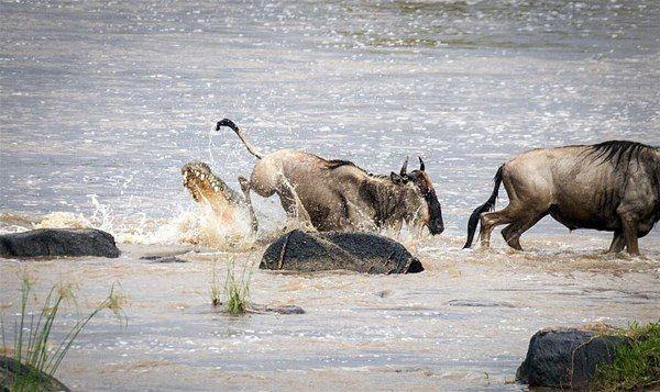 Ailesiyle beraber nehri geçmeye çalışan ceylan başına geleceklerden habersiz ilerlerken, arkasından gelen timsaha yem oldu.