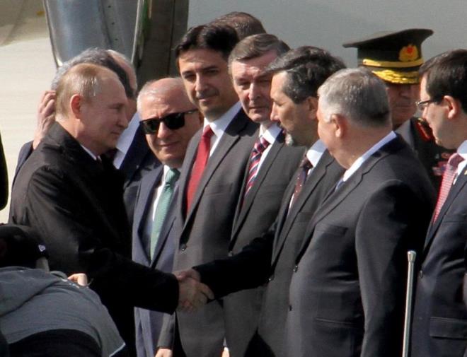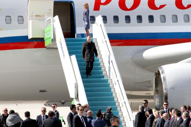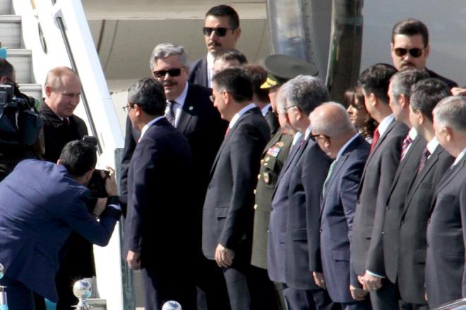 Moskova’dan 8 bakanla Türkiye’ye gelen Putin’i Ankara Esenboğa Havalimanı Büyük Şeref Salonu apronuna gelişinde Dışişleri Bakan Yardımcısı Ahmet Yıldız karşıladı.
