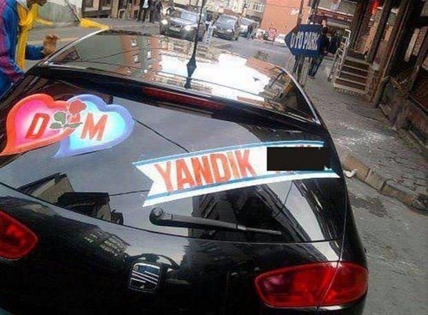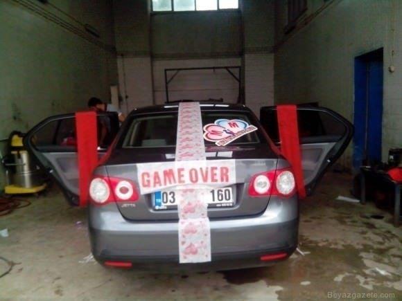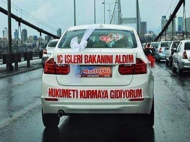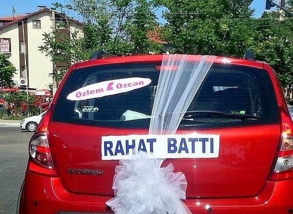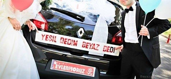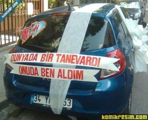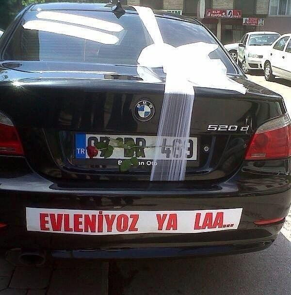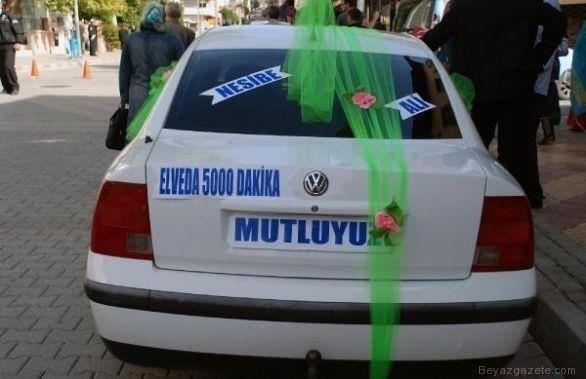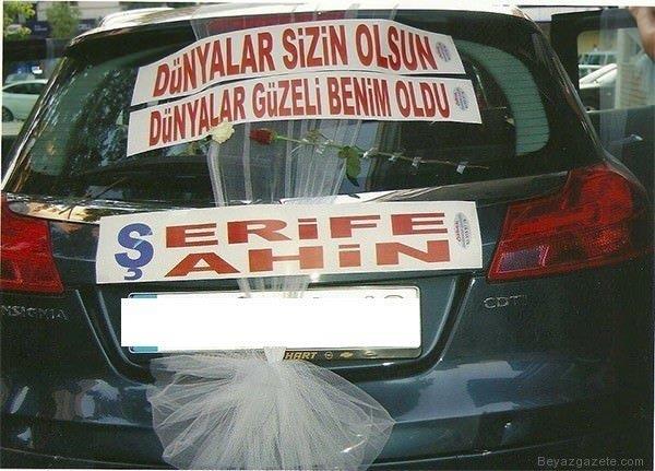 Gelin arabalarına yazılan ilginç yazılar güldürmeye devam ediyor.