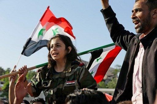 Suriye vatandaşları, Şam rejimine destek gösterileri yaptı.