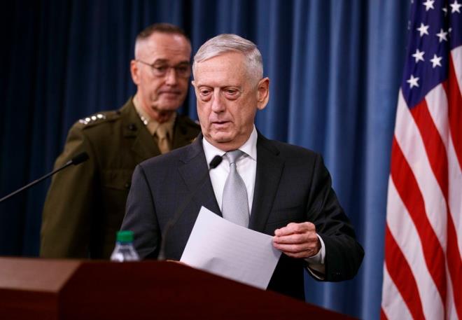 ABD Başkanı Trump’ın ardından kameraların karşısına geçen ABD Savunma Bakanı Jim Mattis, Genelkurmay Başkanı Orgeneral Joseph Dunford saldırıyla ilgili bilgi verdi. Daha önceki saldırıya göre daha fazla füze kullanıldığını açıklayan Mattis, “Saldır tek atımlıktı. Operasyonun devam edip etmeyeceği Esad’a bağlı olacak” dedi. Suriye rejimine ait hava savunma füzelerinin saldırılara karşılık verdiğini ifade eden Dunford, “Bu saldırı dalgası sona erdi” şeklinde konuştu.