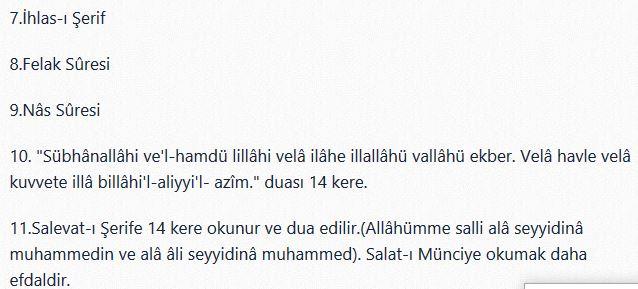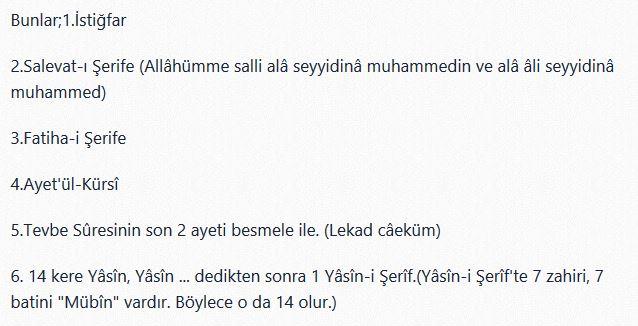 Resûlullâh Efendimiz'in isimlerinden "Tâhâ"nın ebced hesabıyla değeri 14 olduğu için şunlar 11 şey 14 kere okunur. -