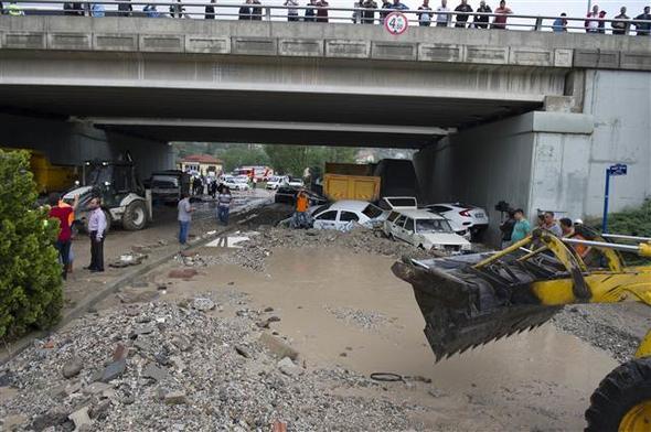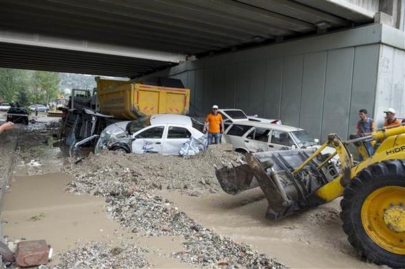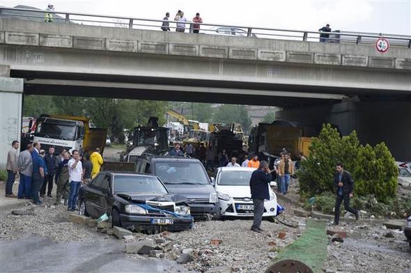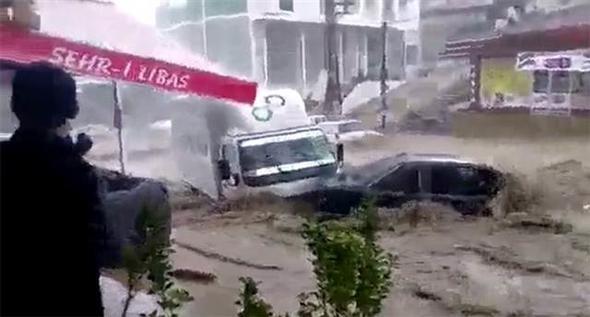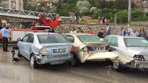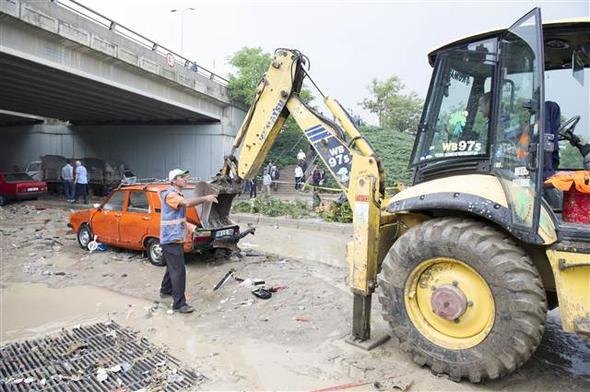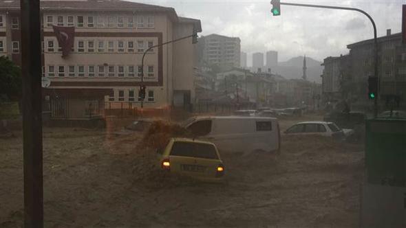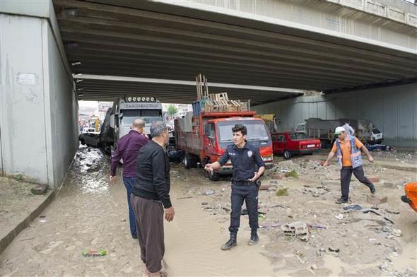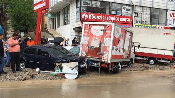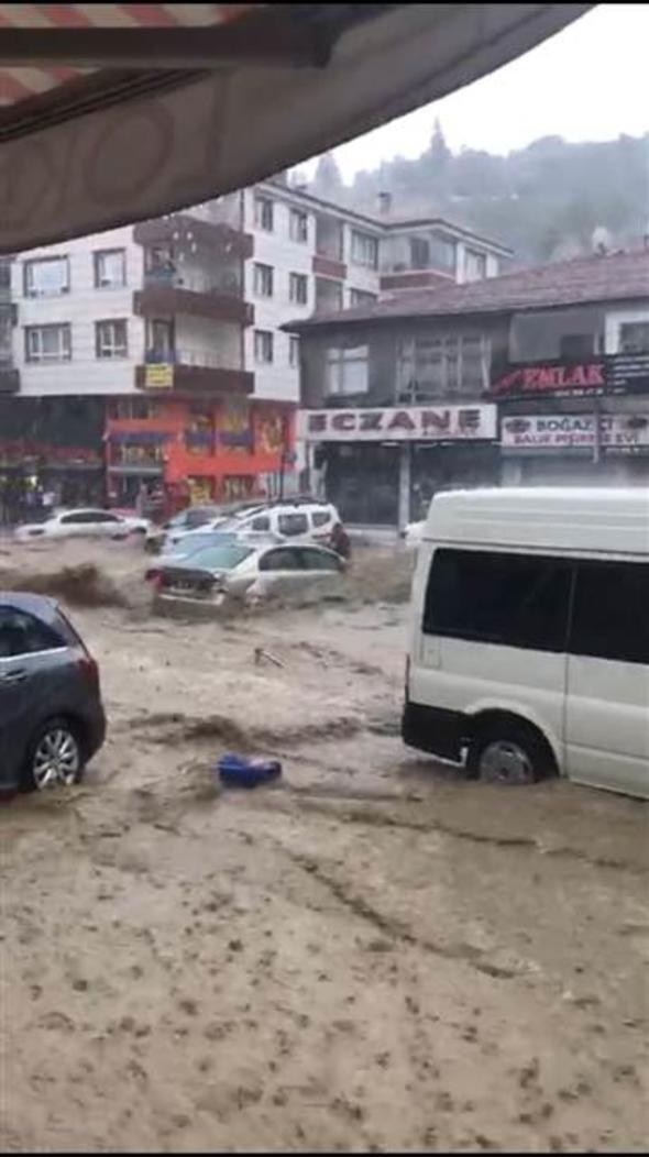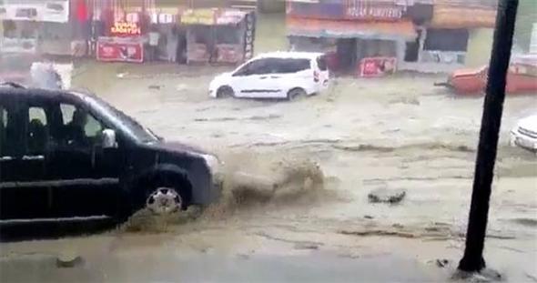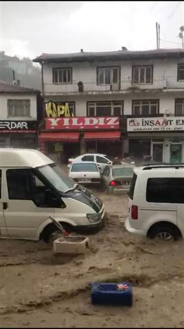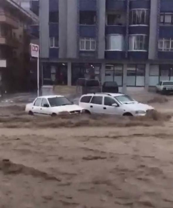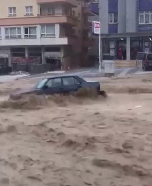 Ankara Mamak Neşet Ertaş Caddesi’nde aniden bastıran sağanak yağış nedeniyle sel suları önüne araçları katarak sürükledi. Bu sırada caddede bulunan bir kişi de sele kapıldı. Çok sayıda iş yerini su bastı.