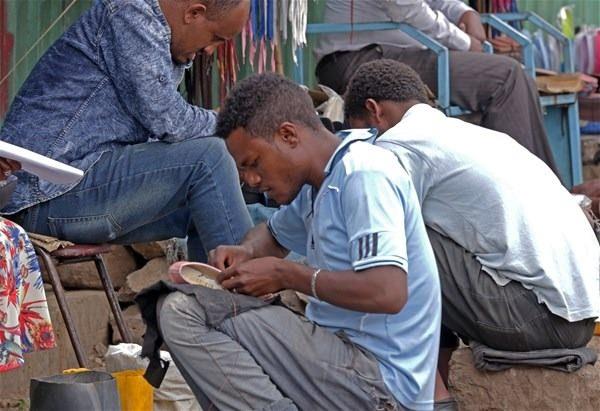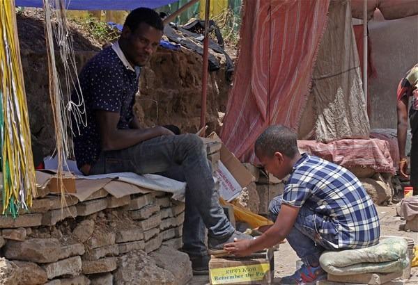Etiyopya'nın farklı kentlerinden de gelen aralarında çocukların da bulunduğu ayakkabı boyacıları, verdikleri her hizmetten 3-10 Birr arası (50 ABD Cent'inden az) kazanıyor.