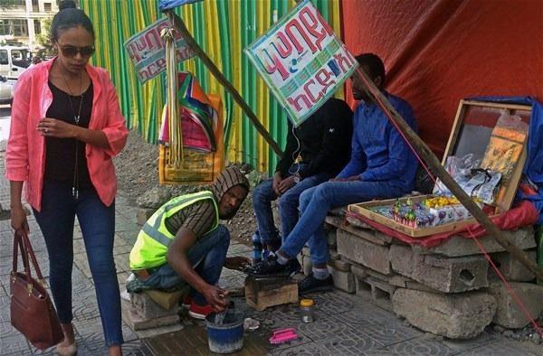 Etiyopyalıların, yerel Amharca dilinde ''ayakkabı boyacısı'' anlamına gelen ''List Row'' olarak adlandırdıkları kişiler, başkent Addis Ababa'nın en işlek caddelerinde çalışarak geçimlerini sağlıyor.