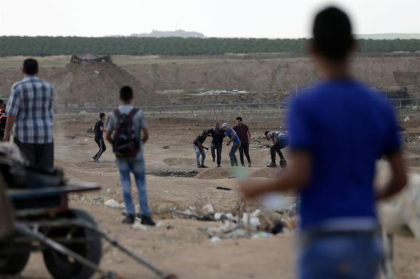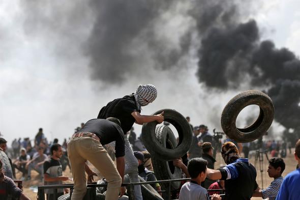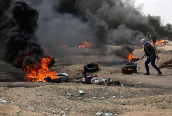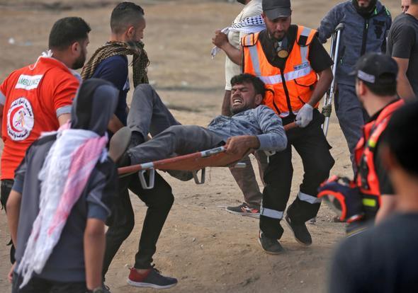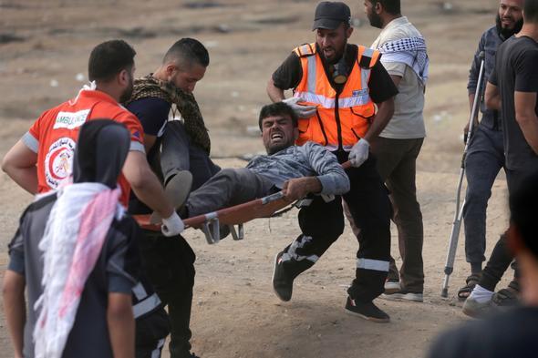 Filistin Kızılayı'ndan yapılan yazılı açıklamada da Gazze Şeridi'nin İsrail sınırında düzenlenen gösterilerde şu ana kadar gerçek mermi, şarapnel, gaz kapsülleri ve göz yaşartıcı gaz nedeniyle yüzlerce Filistinlinin yaralandığı kaydedildi.