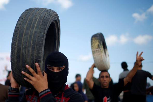 Göstericiler Gazze Şeridi'nde toplanıyor.