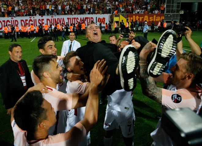 Karşılaşmanın ardından oyuncular Teknik Direktör Fatih Terim'i havaya atarak şampiyonluk coşkusunu yaşadı.
