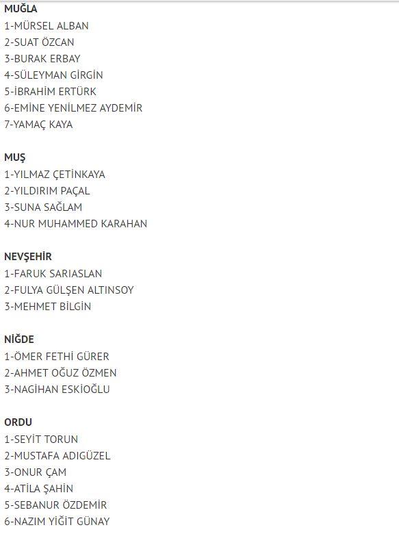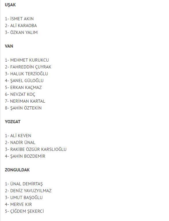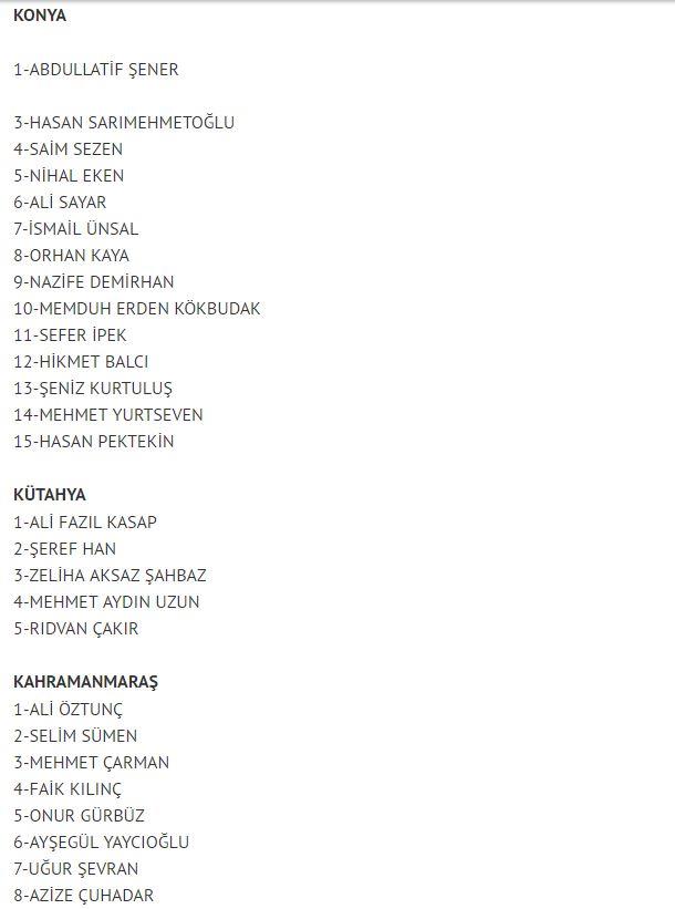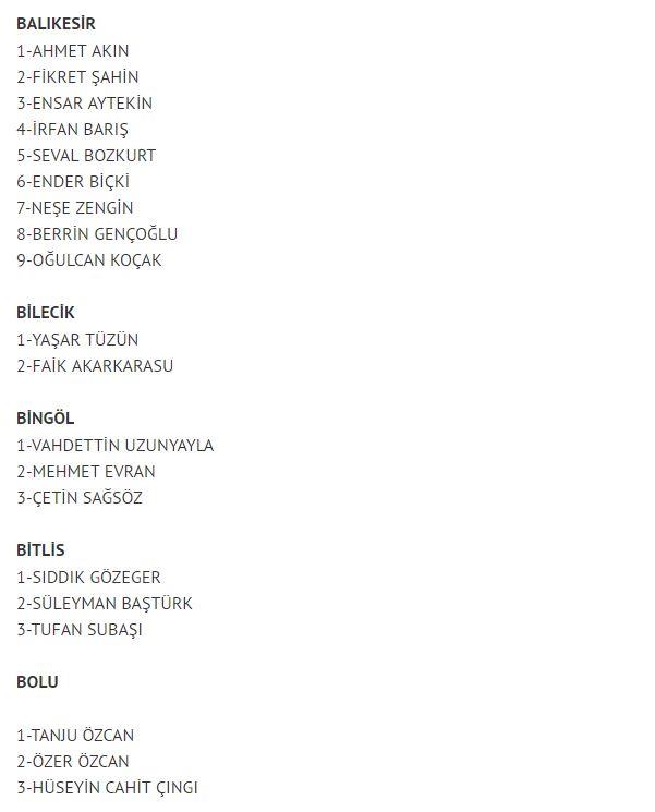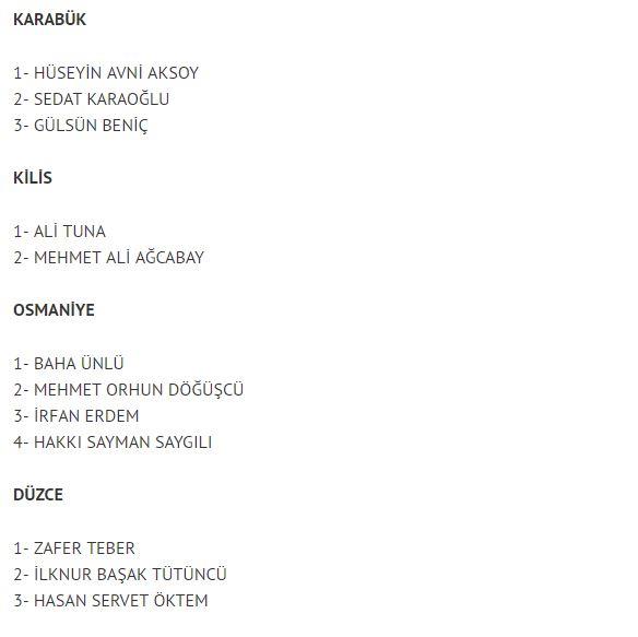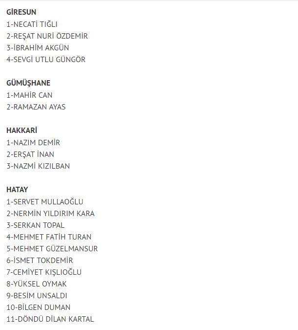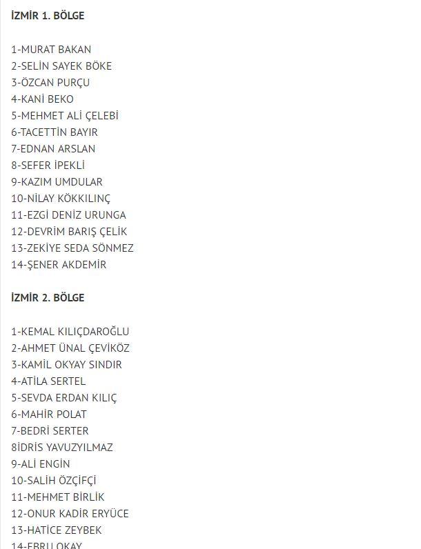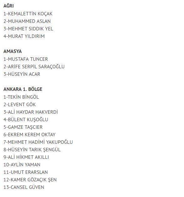 İşte şimdiye kadar belli olan CHP listeleri şöyle: