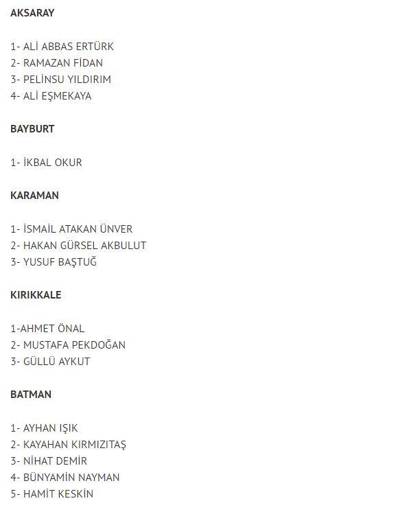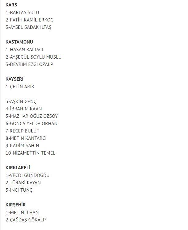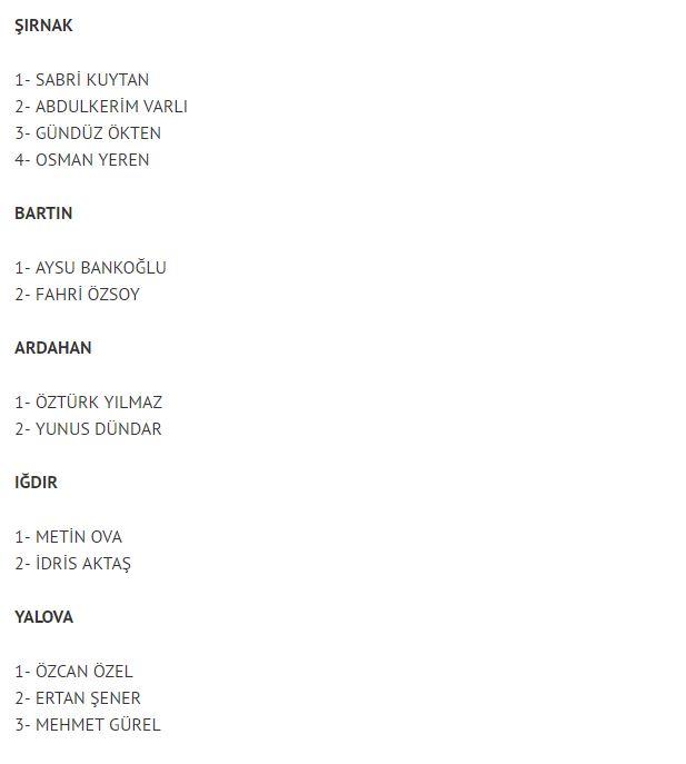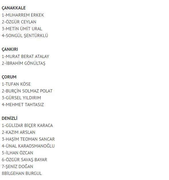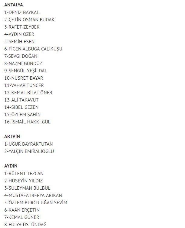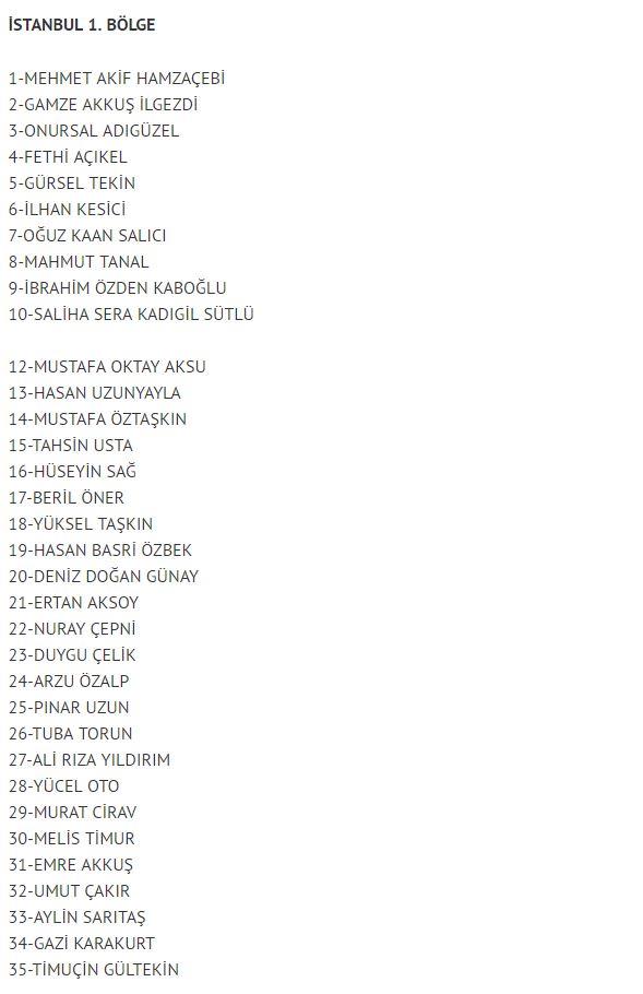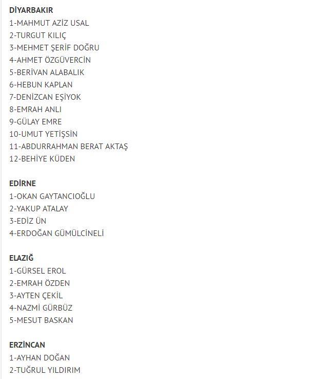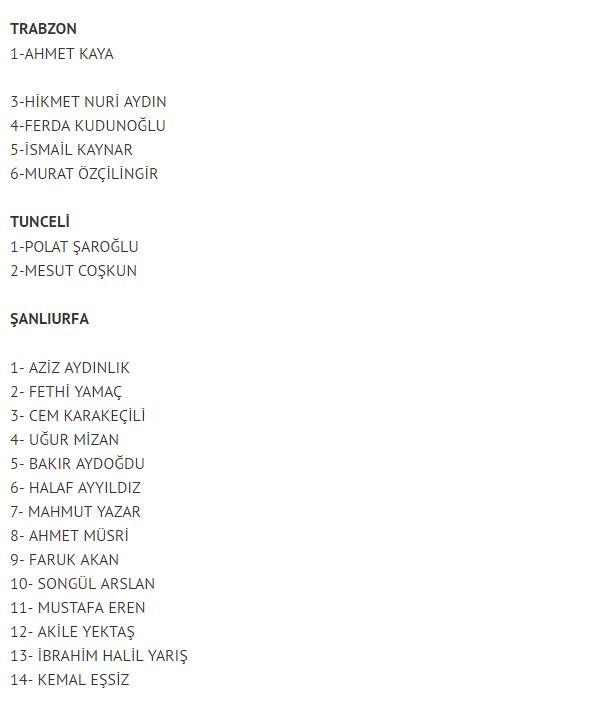 İşte şimdiye kadar belli olan CHP listeleri şöyle: