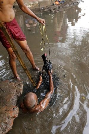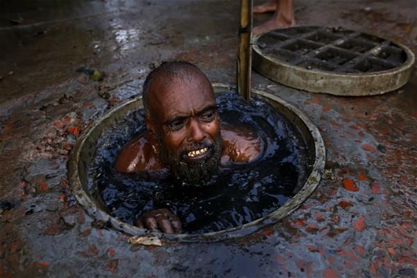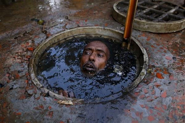 Bangladeş'in başkenti Dakka'nın yetersiz kanalizasyon sistemi nedeniyle tıkanan kanalları açmak için lağım temizleyicileri insan ve kimyasal atıkların içine dalıyor.