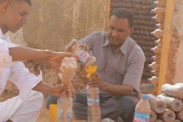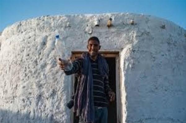 Pet şişeleri kullanarka ev yapan Tateh Lehbib Breica.