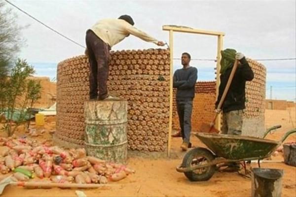 Cezayir'de yaşayan Tateh Lehbib Breica (27), içini kumla doldurduğu pet şişeleri kullanarak evler yapıyor ve bu yapılar betonarme yapılardan daha dayanıklı oluyor. Evlerin yapılışını görenler şaşkınlığını saklayamıyor.