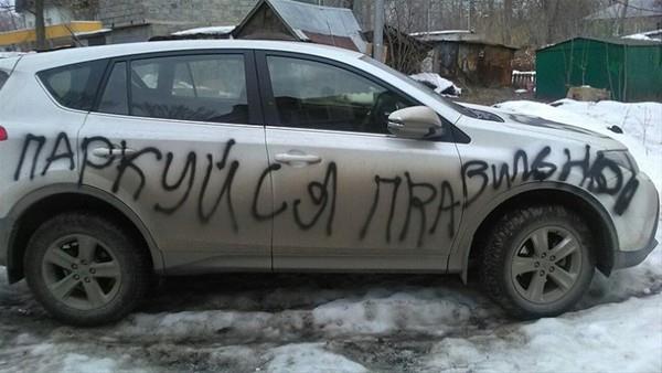 Geçtiğimiz günlerde Ukrayna'da yanlış yere park eden bir araç, öfkeli komşular tarafından inanılmaz bir yöntem ile cezalandırıldı.