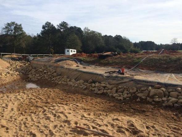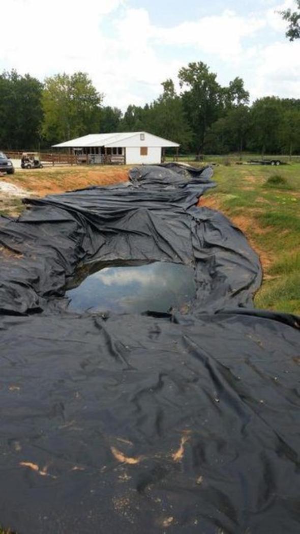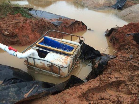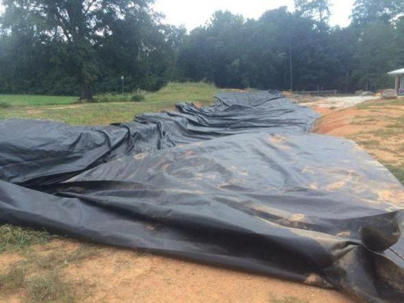 Çukurların içerisini su geçirmez malzemeyle kaplayan kadın çukurların içerisine lastik koydu.