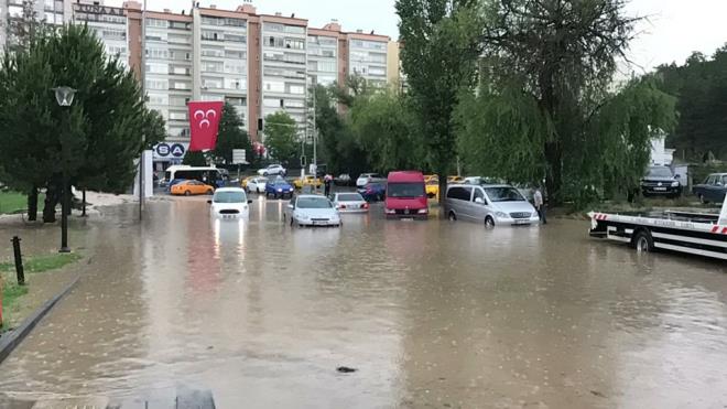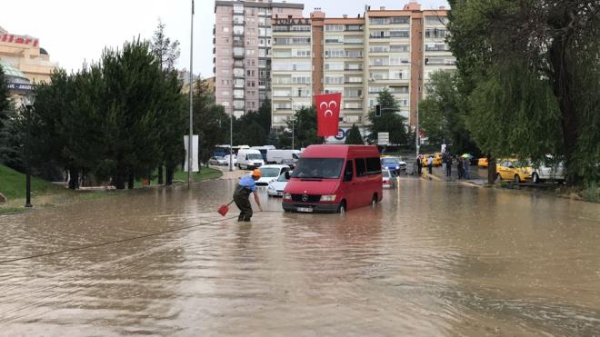 Kuvvetli sağanak nedeniyle başkentin cadde ve sokakları yine göle döndü. Yoğun yağış Mamak ve Çankaya ilçelerinde su baskınlarına neden oldu, bazı ev ve iş yerlerini su bastı.
