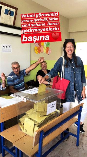 Ünlü sanatçı Gülben Ergen oy kullandığı fotoğrafını "oyver" etiketi ile paylaşırken, ''Günaydın Ülkemiz için hayırlısı olsun'' ifadelerine yer verdi.