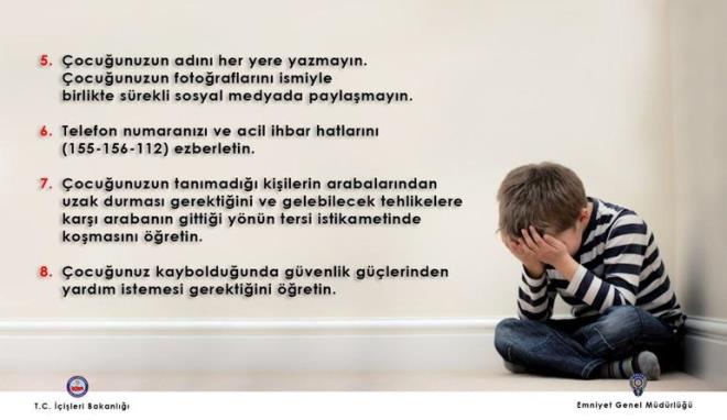 8- Çocuğunuz kaybolduğunda güvenlik güçlerinden yardım istemesi gerektiğini öğretin.