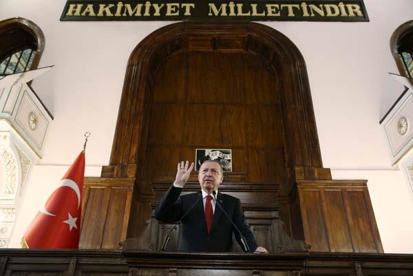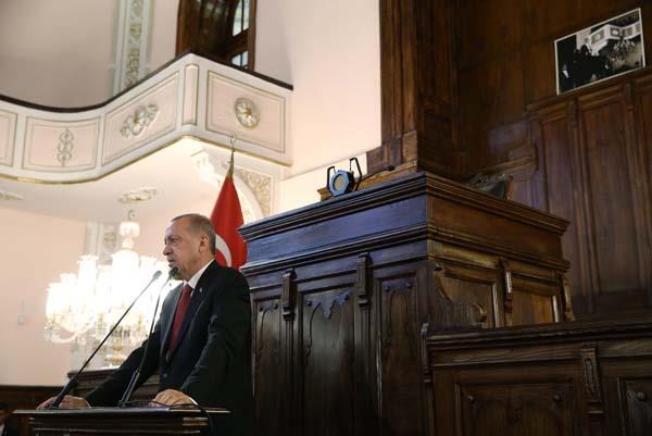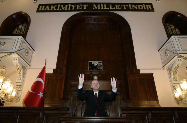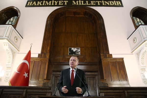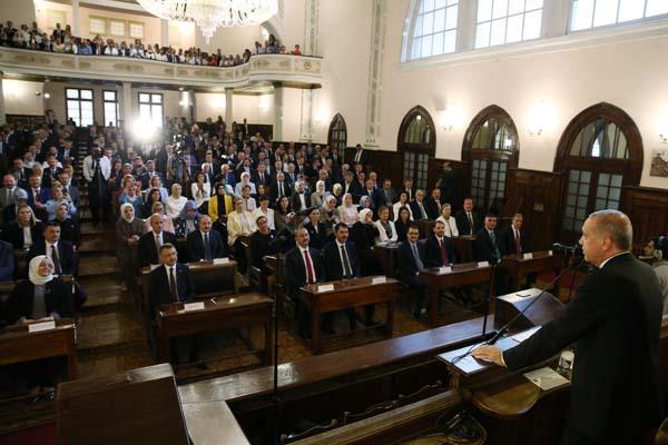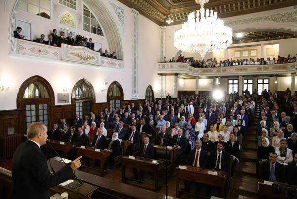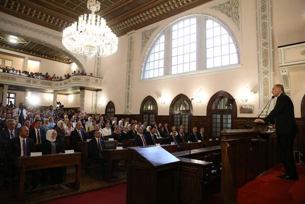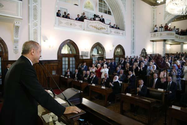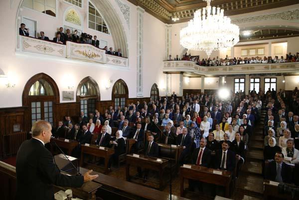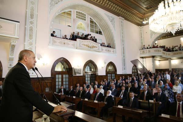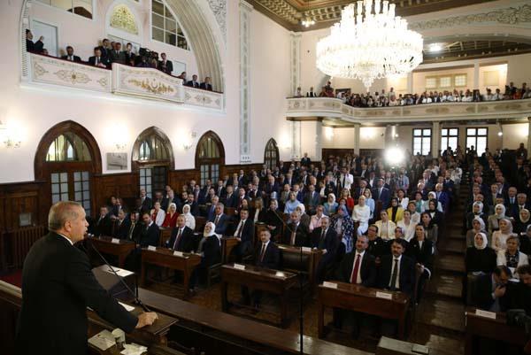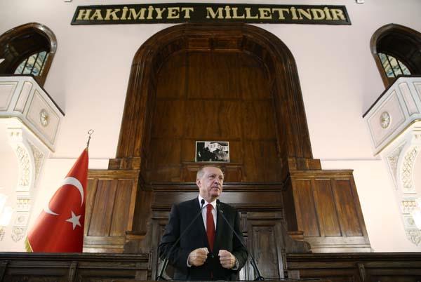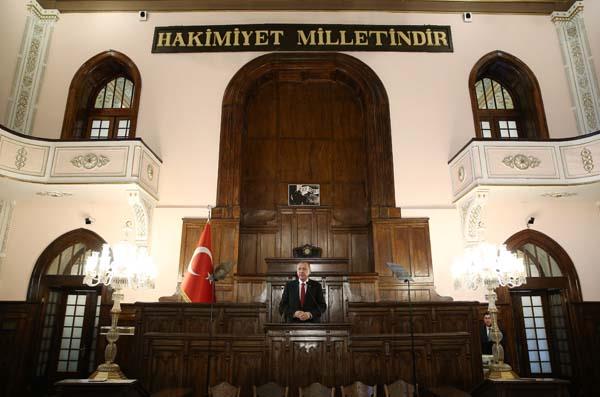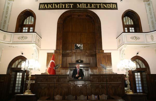 1. Meclis'te konuşma yapan Türkiye Cumhurbaşkanı Recep Tayyip Erdoğan, "1. Meclis gazi bir meclisti, şu anki Meclisimiz de gazilikle şereflenmiştir. Ecdadımızın emanetini yere düşürmemek, ezanlarımı susturtmamak, bayrağı indirtmemek için alın terimizle ve gerektiğinde canımızı ortaya koyarak mücadelemizi sürdürüyoruz. Bu töreni işte bu tarihi sürekliliğin bir devamı olarak görüyoruz. O yüzden bu duygusallığımı hoş görün" dedi.