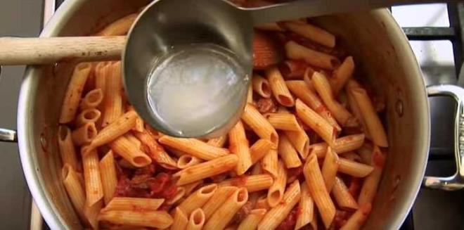 Bildiğiniz üzere makarna nişastalı bir besindir. Pişirildiğinde o nişastanın bir kısmı suya sızar. Makarna suyunun bulanık ve kirli gözükmesinin sebebi budur. Bu nişastalı, tuzlu makarna suyunu makarna sosunuzun mükemmel ipeksi bir kıvama ulaşması için kullanabilirsiniz.