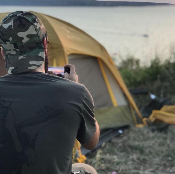 Bir göl kenarında doğayla iç içe tatil yapan Kadir Doğulu kamp fotoğraflarını sosyal medyadan paylaştı.