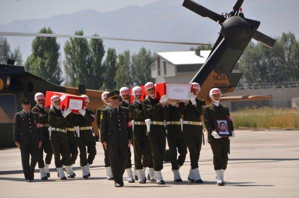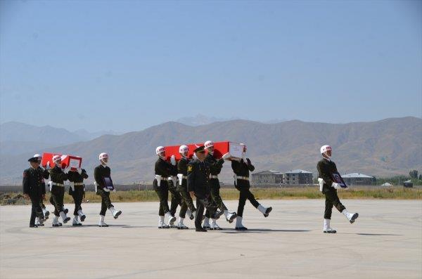 Hakkari'nin Yüksekova ilçesinde, PKK'lı teröristlerin yola tuzakladığı patlayıcının sivil aracın geçişi sırasında infilak ettirilmesi sonucu şehit olan Nurcan Karakaya ve 11 aylık Bedirhan Mustafa Karakaya için Selahaddin Eyyubi Havalimanında tören düzenlendi.