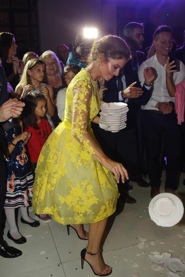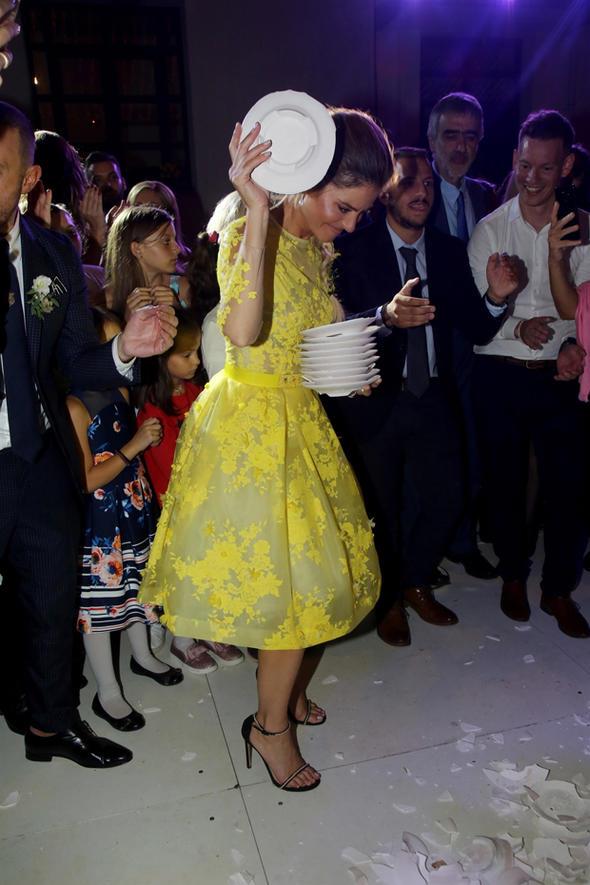 Gece boyunca pistten inmeyen Maria Menounos, davetliler ile birlikte geleneksel Yunan dansları da yaptı, eğlence sırasında bol bol tabak da kırdı.