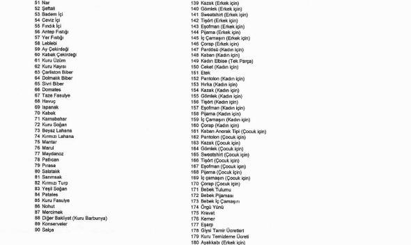 88- Diğer bakliyat (kuru barbunya) 89- Konserveler 90- Salça