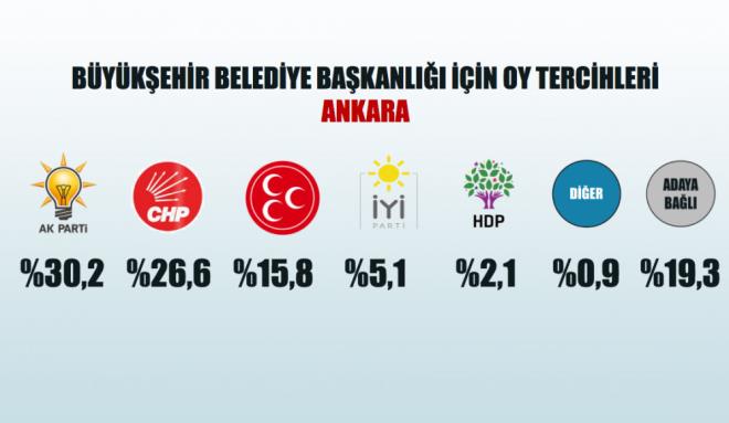 İşte anket sonuçları: AK PARTİ: %32,4 CHP: %23,9 MHP: %15,7 HDP: %5,1 İYİ PARTİ: %2,4 DİĞER: %0,9 ADAYA BAĞLI/KARARSIZ: %19,6 İŞTE 5 BÜYÜKŞEHİRDE OY ORANLARI...