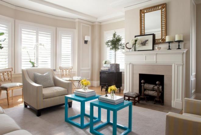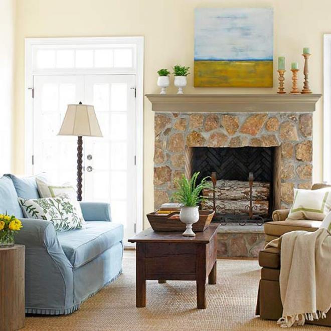 Pastel renkli bir şömine duvarınız varsa büyük pastel renkli vazolar ile ahenk katabilirsiniz.