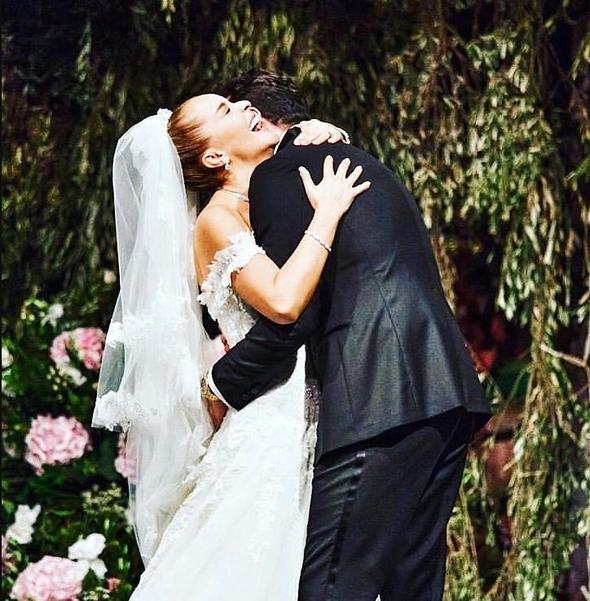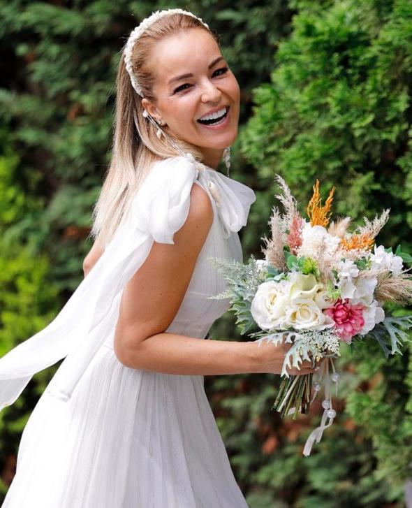 Güzel şarkıcı, düğün fotoğrafına, "Evlilik dünyanın en güzel sevdasına 'evet' demekle başlıyor. Kocacığım ömrüne talibim" satırlarını yazdı.
