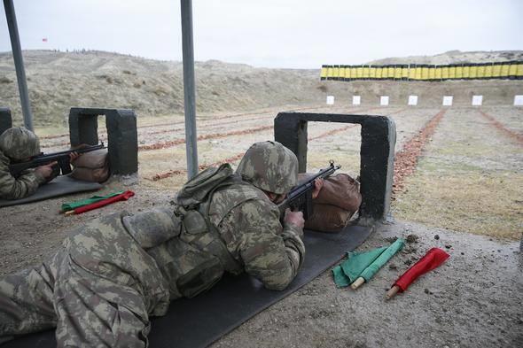 Marşlar söyleyip selam vermeyi öğrenen bedelli askerler 25 metreden atış da gerçekleştiriyor.