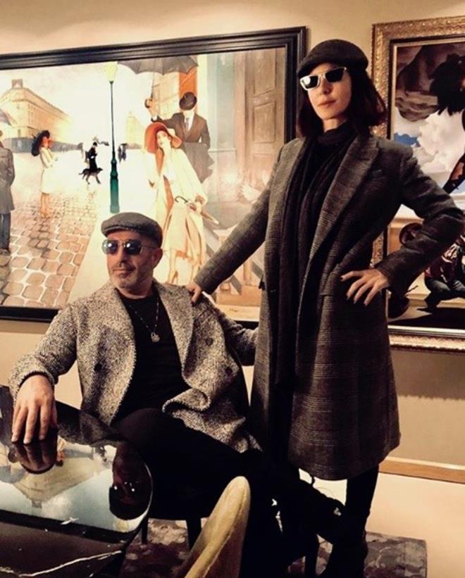 Mekan çıkışı objektife takılan çift, uyumlu giyim tarzlarıyla dikkat çekti.