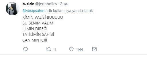 Okulların tatil olduğunu duyan öğrenciler ise sosyal medyadan Vali Şahin'e teşekkür ettiler.