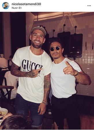 Romelu Lukaku, Nusret'in şovunu sosyal medya hesabından paylaşırken, Martial ve Andreas Pereira'da onlara eşlik etti.