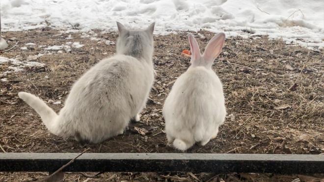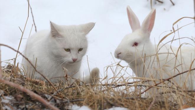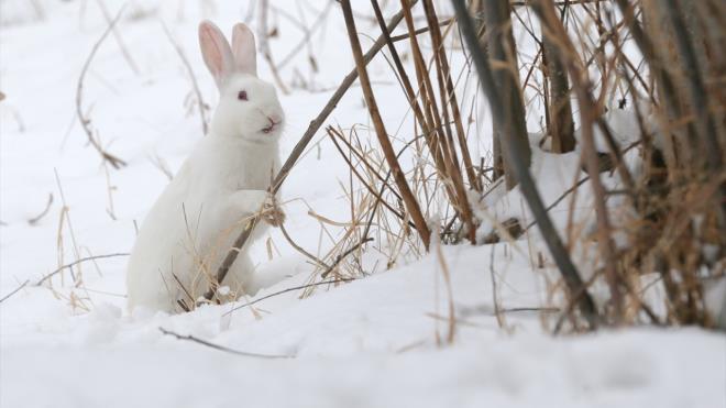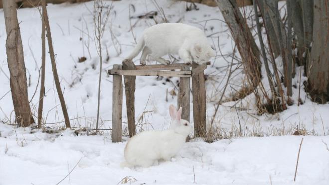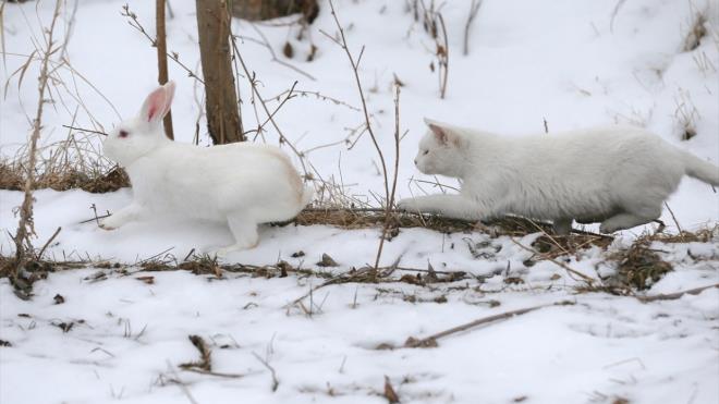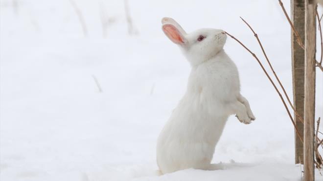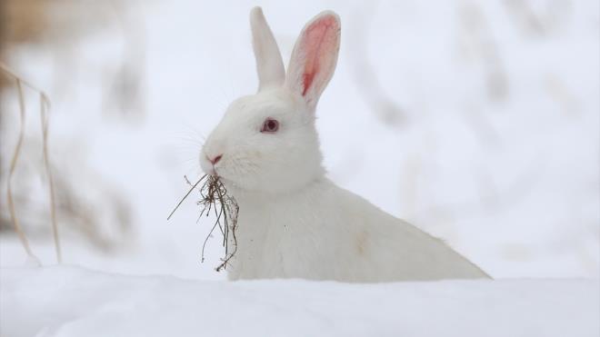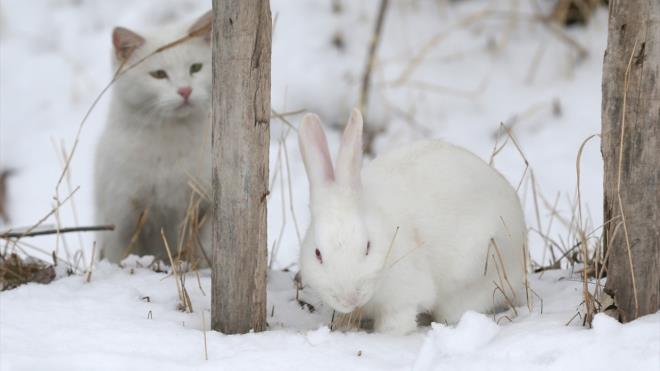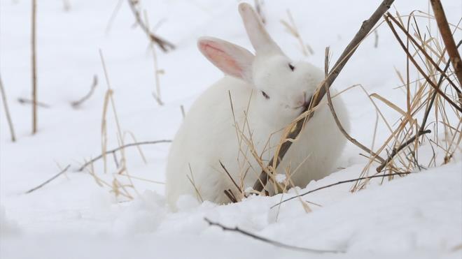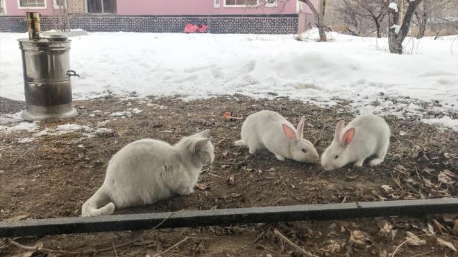 Van'ın Edremit ilçesinde bir vatandaş tarafından beslenen ve doğada zaman geçirmeleri için kafesinden çıkarılan tavşanlar karın keyfini çıkardı.