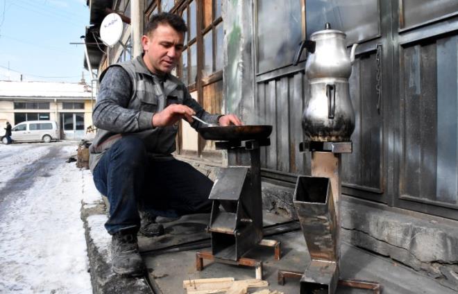 Sivas'ta demirci Birol Kuş (41), kısa sürede ısınan ve hem yemek pişirilen hem de çay yapılabilen semaver üretti.