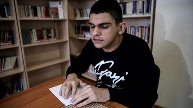 İstanbul Milli Eğitim Müdürlüğünün himayesinde yürütülen, özel eğitim ihtiyacı olan bireyleri sosyal ve fiziksel çevrelerinden mümkün olduğu kadar ayırmadan toplumla etkileşimi ve karşılıklı uyumu sağlamaya yönelik "Farklılıklarımızla Yaşıyoruz, Engelleri Birlikte Aşıyoruz" projesinden hareketle Küçükçekmece Gazi Anadolu Lisesi İngilizce Öğretmeni Özen Kocatüfenk Yıldız, görme engelli öğrencisi Emrullah Morkoyun`a Braille alfabesiyle ders vererek geleceğe hazırlıyor.