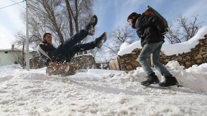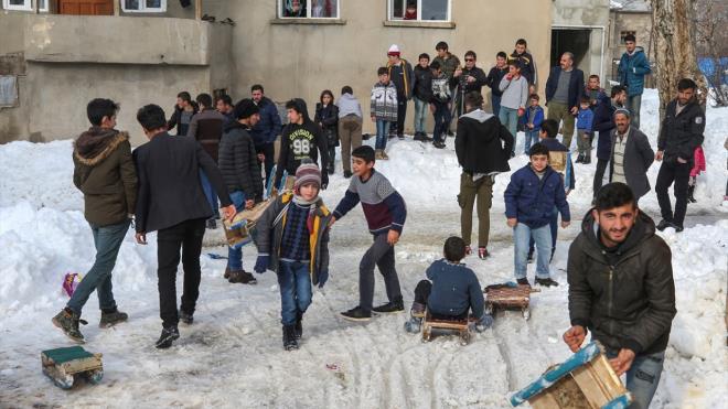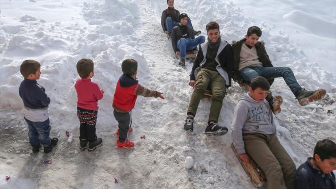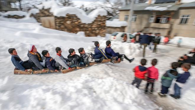 Mahalle sakinlerinden Muhammed Şahin ise büyüklerin, çocukların kızak keyfini izleyerek sevinçlerine ortak olduğunu kaydetti.