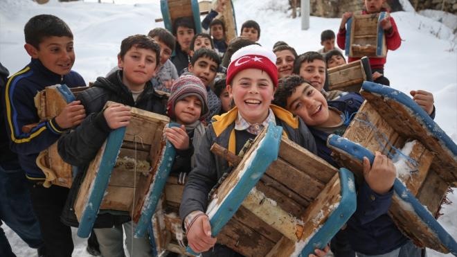 "Tatilimizi güzel değerlendirmek amacıyla kayak yapıyoruz." Havanın güzel olduğu her gün kızakla kaydıklarını belirten Hazar, "Kızaklarımızı babalarımızın ve ağabeylerimizin yardımıyla tahta ve boru kullanarak yapıyoruz. Tatilimizi güzel değerlendirmek amacıyla kayak yapıyoruz. Böylelikle zamanımız çok keyifli geçiyor." dedi. f