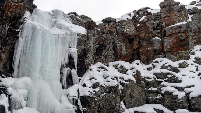 Metrelerce uzunluktaki buz kütlesi haline gelen ve 12 metre yükseklikten dökülen şelale ile gölet, oluşturduğu görsel güzelliğiyle bölgeden geçenlerin de ilgisini çekiyor.