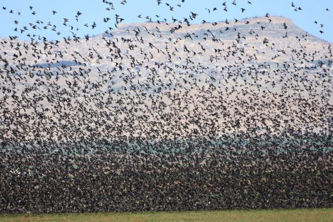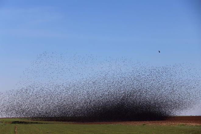 Sabah saatlerinde Mardin Ovası’nda ekimi yapılan buğday tarlalarına akın eden binlerce sığırcık kuşunun gökyüzünde aynı anda kanat çırpması izleyenleri büyüledi.