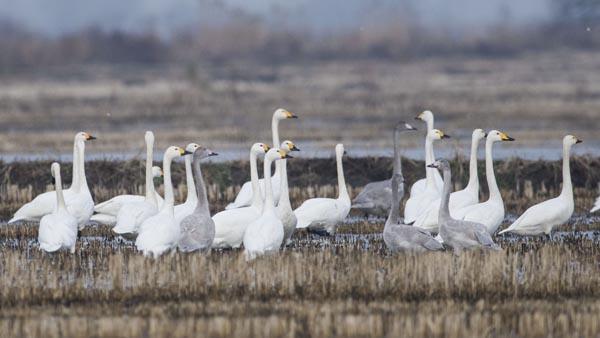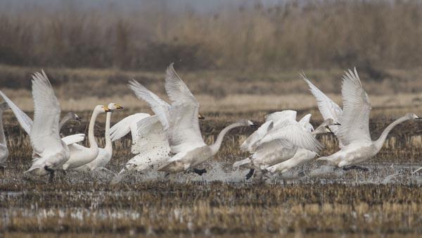 Boyları 1 buçuk metreyi geçen ve kanat açıklığıyla 2 metreyi bulan cüsseleriyle boş çeltik tarlalarını bembeyaz hale çeviren kuğular belgeselleri aratmayan görüntüler oluşturuyor.