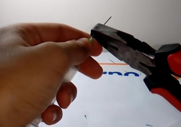 Bu lastiği şırıngaya ucundaki iğne deliğinden yerleştirdi.