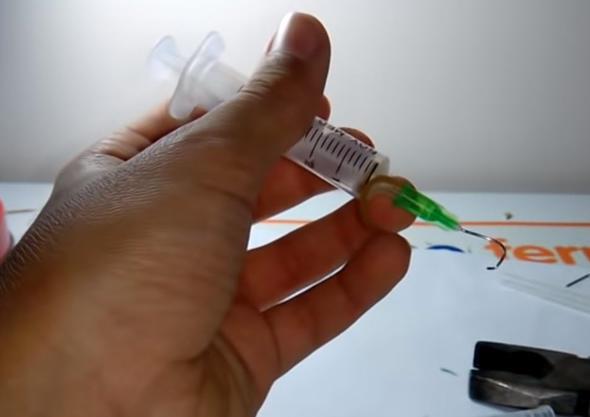Bu şekilde şırınganın içine soktu.